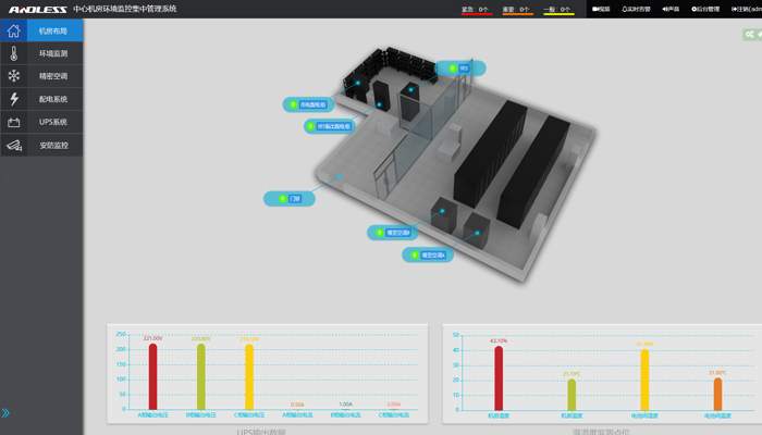 2.監(jiān)控系統(tǒng)包括機(jī)房動(dòng)力、環(huán)境、安防以及網(wǎng)絡(luò)四個(gè)部分,具體監(jiān)控對(duì)象包括:市電、配電、UPS、精密配電柜、直流/交流屏、STS/ATS、蓄電池、空調(diào)、溫濕度、有害氣體、粉塵、新風(fēng)機(jī)、漏水、水位、照明、防雷、消防、煙感、紅外、門(mén)禁、視頻、服務(wù)器、交換機(jī)、路由器等