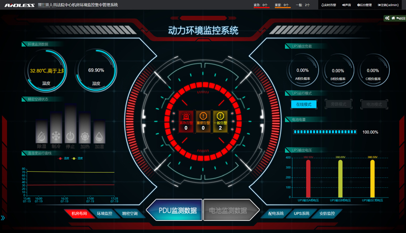 封閉冷通道動環(huán)監(jiān)控系統(tǒng)實現(xiàn)了一個小型封閉環(huán)境內(nèi)的動力環(huán)境與門禁等子系統(tǒng)的全面監(jiān)控。