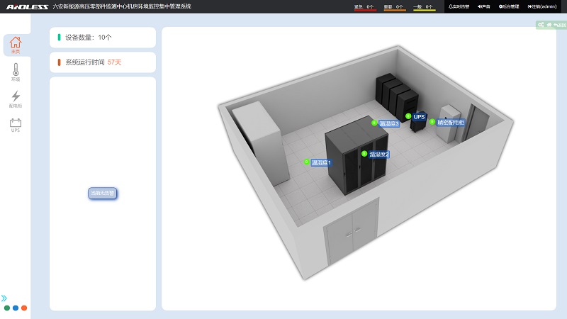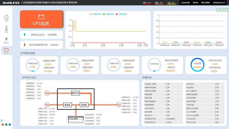 根據(jù)用戶現(xiàn)場情況,建設普通機房方案。按用戶要求集成機柜、供配電、消防、環(huán)境監(jiān)控和管理等所有子系統(tǒng),為客戶提供快速部署、高效節(jié)能、空間緊湊的機房解決方案。為本項目配置UPS不間斷電源系統(tǒng)、動環(huán)監(jiān)控系統(tǒng)。