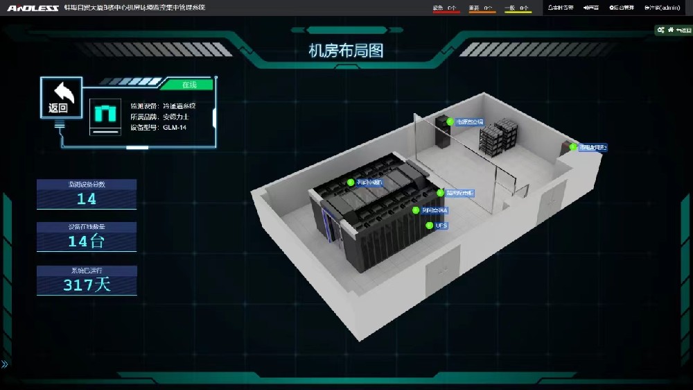 本次榮幸為研究院機(jī)房項(xiàng)目提供一套安德力士品牌微模塊通道機(jī)房設(shè)備,涉及系統(tǒng)有:機(jī)柜、精密空調(diào)(基站精密空調(diào)、列間精密空調(diào))、精密配電、動(dòng)力環(huán)境監(jiān)控系統(tǒng)。