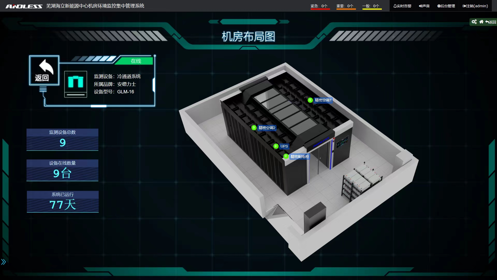 我司近期為蕪湖海立新能源技術(shù)有限公司提供安德力士品牌雙排微模塊機房一套(含UPS不間斷電源、機柜、精密配電、空氣調(diào)節(jié)、動力環(huán)境監(jiān)控等系統(tǒng)設(shè)備),現(xiàn)已調(diào)試完成。