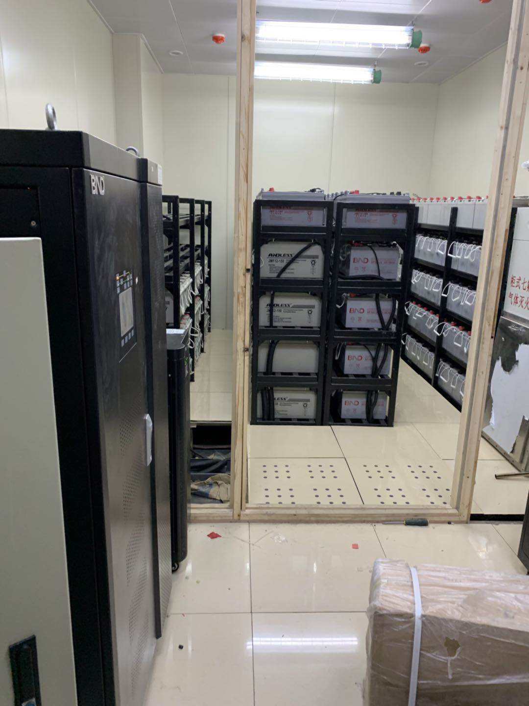 白湖監(jiān)獄安德力士模塊機(jī)180/60K 1臺(tái),12V150AH 96只,電池架4個(gè)已安裝調(diào)試完畢,同時(shí)安裝了一批蓄電池12V100AH 48只,市電配電柜 1個(gè),UPS輸出配電柜1個(gè),電池配電防暴柜1個(gè),并且已安裝調(diào)試完畢。UPS電源系統(tǒng)由五部分組成:主路、旁路、電池等電源輸入電路,進(jìn)行AC/DC變換的整流器(REC),進(jìn)行DC/AC變換的逆變器(INV),逆變和旁路輸出切換電路以及蓄能電池。其系統(tǒng)的穩(wěn)壓功能通常是由整流器完成的,整流器件采用可控硅或高頻開(kāi)關(guān)整流器,本身具有可根據(jù)外電的變化控制輸出幅度的功能,從而當(dāng)外電發(fā)生變化時(shí)(該變化應(yīng)滿足系統(tǒng)要求),輸出幅度基本不變的整流電壓。凈化功能由儲(chǔ)能電池來(lái)完成,由于整流器對(duì)瞬時(shí)脈沖干擾不能消除,整流后的電壓仍存在干擾脈沖。儲(chǔ)能電池除可存儲(chǔ)直流直能的功能外,對(duì)整流器來(lái)說(shuō)就像接了一只大容量電容器,其等效電容量的大小,與儲(chǔ)能電池容量大小成正比。由于電容兩端的電壓是不能突變的,即利用了電容器對(duì)脈沖的平滑特性消除了脈沖干擾,起到了凈化功能,也稱對(duì)干擾的屏蔽。頻率的穩(wěn)定則由變換器來(lái)完成,頻率穩(wěn)定度取決于變換器的振蕩頻率的穩(wěn)定程度。為方便UPS電源系統(tǒng)的日常操作與維護(hù),設(shè)計(jì)了系統(tǒng)工作開(kāi)關(guān),主機(jī)自檢故障后的自動(dòng)旁路開(kāi)關(guān),檢修旁路開(kāi)關(guān)等開(kāi)關(guān)控制。
