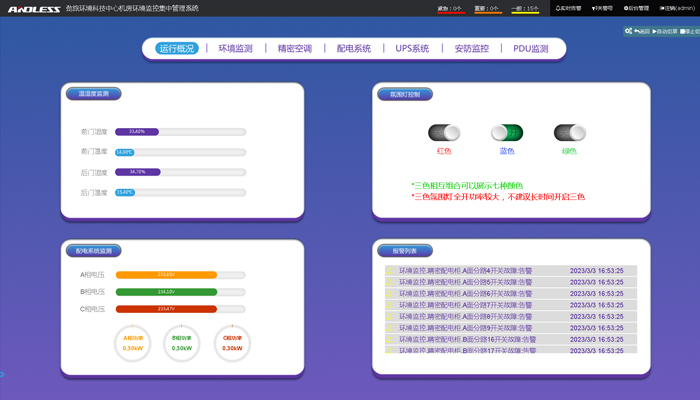 結(jié)合勁旅環(huán)境科技中心機房項目情況,本次為其提供搭建一套雙排冷通道微模塊,并配有一套環(huán)境監(jiān)控集中管理系統(tǒng),現(xiàn)已安裝調(diào)試完成。