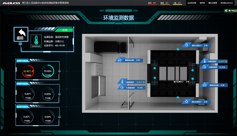 封閉冷通道動(dòng)環(huán)監(jiān)控系統(tǒng)實(shí)現(xiàn)了一個(gè)小型封閉環(huán)境內(nèi)的動(dòng)力環(huán)境與門禁等子系統(tǒng)的全面監(jiān)控。