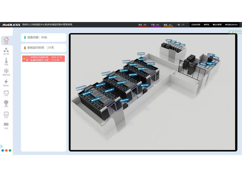 概述:安德力士機房動力環(huán)境集中監(jiān)控管理系統(tǒng),系統(tǒng)人機界面設(shè)計友好,塊化設(shè)計,安裝使用簡單,提供北向接口,支持對接其他系統(tǒng)軟件平臺。以形象直觀的圖形界面方式實時顯示所轄范圍內(nèi)各對象的工作狀態(tài)和運行參數(shù);子系統(tǒng)具備兼容性,支持眾多廠家的智能設(shè)備;具備擴展性,提供二次開發(fā)接口,方便第三方軟件系統(tǒng)集成。具有報表管理功能,可以通過EXCEL表格對溫濕度記錄以及各種報警數(shù)據(jù)進行統(tǒng)計。應(yīng)用范圍:適用于金融、政 府、電信行業(yè)、企業(yè)等大型、中小型數(shù)據(jù)中心。性能特點:通過遠程傳輸,對數(shù)據(jù)中心機房等相關(guān)站點的UPS、蓄電池、高低壓配電、油機、精密空調(diào)等多種設(shè)備以及溫度、濕度、火警、盜警等環(huán)境參量以及現(xiàn)場圖像集中進行實時檢測,能夠及時判斷故障并產(chǎn)生告警,對遠端設(shè)備進行遙控和調(diào)節(jié),從而實現(xiàn)機房服務(wù)器,網(wǎng)絡(luò)設(shè)備、通信設(shè)備提供穩(wěn)定、安全的運行環(huán)境。采用這種現(xiàn)代化的監(jiān)控系統(tǒng),其根本目的是為了提高設(shè)備的維護和管理質(zhì)量,降低設(shè)備維護成本,提高整體工作效率,從而建立起一套高可靠性、高效率的維護體制。本監(jiān)控系統(tǒng)可采用分布式聯(lián)網(wǎng)、集中管控的組網(wǎng)架構(gòu),監(jiān)測點的數(shù)據(jù)通過底層通訊總線匯聚到TCP/IP網(wǎng)絡(luò),中心機房部署的一臺管理服務(wù)器和綜合管理軟件平臺,對所有網(wǎng)絡(luò)中的監(jiān)控設(shè)備和數(shù)據(jù)進行統(tǒng)一的監(jiān)控管理。具有遠程自測、關(guān)機及重啟UPS功能,能夠定時任務(wù)進行此類操作,并具有相關(guān)的記錄報表。能夠按照實際情況進行設(shè)定使用,可以設(shè)置報警的條件,對每種監(jiān)控量的報警設(shè)置可按報警類別的不同,進行不同的設(shè)置,也可根據(jù)需要對相關(guān)告警量的上下限閥值設(shè)置進行調(diào)整。微模塊內(nèi)設(shè)備具備供電全鏈路顯示功能,可顯示從微模塊的總輸入到IT機柜的PDU,整個配電拓撲展示開關(guān)狀態(tài)、能量流圖、設(shè)備故障狀態(tài)、支路對應(yīng)關(guān)系、關(guān)鍵信號參數(shù)(電壓、電流、溫度等)。軟件通過《系統(tǒng)與軟件工程 系統(tǒng)與軟件質(zhì)量要求和評價》GB/T 25000.51 2016中測試要求,保障管理平臺軟件質(zhì)量及安全性。異常數(shù)據(jù)分析和報警:能夠自動對異常數(shù)據(jù)進行分析和確 認,并發(fā)送通知至系統(tǒng)管理員,具備界面、短信、電話、郵件、 聲光告警。數(shù)據(jù)記錄與追溯:能夠根據(jù)時間段、設(shè)備等條件進行信息 數(shù)據(jù)查詢,實現(xiàn)數(shù)據(jù)的可記錄、可追溯功能手機APP及微信報警系統(tǒng)◆手機APP移動客戶端報警系統(tǒng):為便于實現(xiàn)機房的無人值守和遠程管理,滿足客戶對移動終端管理的需求,安德力士開發(fā)了移動APP監(jiān)控系統(tǒng),實現(xiàn)機房所有監(jiān)控數(shù)據(jù)的實時顯示和控制。監(jiān)控界面如下所示。微信監(jiān)控報警推送:系統(tǒng)監(jiān)測平臺具備微信端應(yīng)用,通過關(guān)注公眾號的方式方式推送信息,非以綁定郵箱方式推送當報警事件發(fā)生時,系統(tǒng)將通過微信將報警信息推送給相關(guān)管理人員。 智能網(wǎng)關(guān)監(jiān)控主機:雙路AC220V輸入電源 , 高性能Intel?I57200U處理器4核處理器,工作環(huán)境溫度:-40?+70oC。8GB內(nèi)存,256GB固態(tài)硬盤存儲,16路RS485(隔離),12個DI點,12路DO點。工業(yè)級設(shè)計,7×24h穩(wěn)定運行;支持助理網(wǎng)絡(luò)服務(wù)和數(shù)據(jù)安全,支持主流工業(yè)平臺和主流工業(yè)協(xié)議(如TCP/RTU)。其他接口:2路CAN接口(隔離),2個網(wǎng)絡(luò)接口(RJ45,100/1000Mbps?適應(yīng));1個WiFi天線接口,2個USB3.0接?,1個TypeC接口,可兼容GPS;1路HDMI輸出。溫濕度傳感器:LCD 顯示,測量范圍:0℃~50℃,測量精度:±0.3℃,濕度: ±3%RH,傳感元件:NTC,供電方式:24VAC/DC,輸出信號:4~20mA、RS485,絕緣電阻:10MΩ以上(DC500V兆歐表)。監(jiān)控系統(tǒng)通過采集溫濕度傳感器所檢測的溫度和濕度信息,可實時地監(jiān)測現(xiàn)場溫濕度狀況。配電監(jiān)測功能:通過智能電量儀485接口能夠監(jiān)測低壓配電柜的配電參數(shù)及狀態(tài):包括系統(tǒng)頻率 F(Hz)、三相相電壓、線電壓、電流值、有功功率、 無功功率、功率因素等參數(shù)。水浸傳感器、漏水監(jiān)測功能:含有漏水感應(yīng)繩,通過報警控制器將漏水報警信號傳至監(jiān)控主機,報警方式:非定位式。供電電壓:9-30Vdc(標準)24Vac(可選);外殼材質(zhì):ABS+PC;檢測線纜材質(zhì):鐵氟龍+導(dǎo)電聚乙烯+合金(螺旋式結(jié)構(gòu));輸出信號:RS485/ModbusRTU。